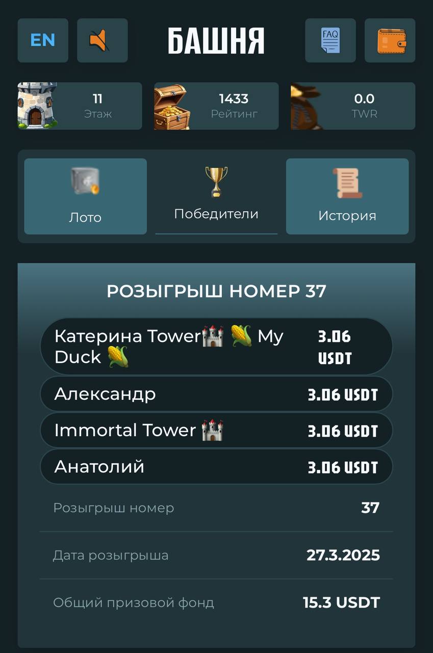 🏰 TOWER 🏰: Розыгрыш №37 и Ежедневные Бонусы