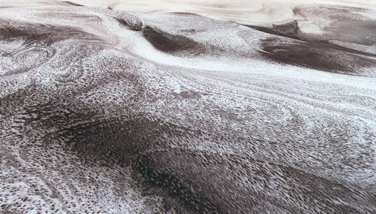 Так выглядит «зима» на Марсе. В сети опубликовали снимки с аппарата Mars Express и зонда Mars Reconnaissance Orbiter. Технически это не снег, а лед из углекислого газа, нагретый солнечный светом. В этом процессе лед переходит в газообразное состояние. Снимки были сделаны в летнее время, когда…