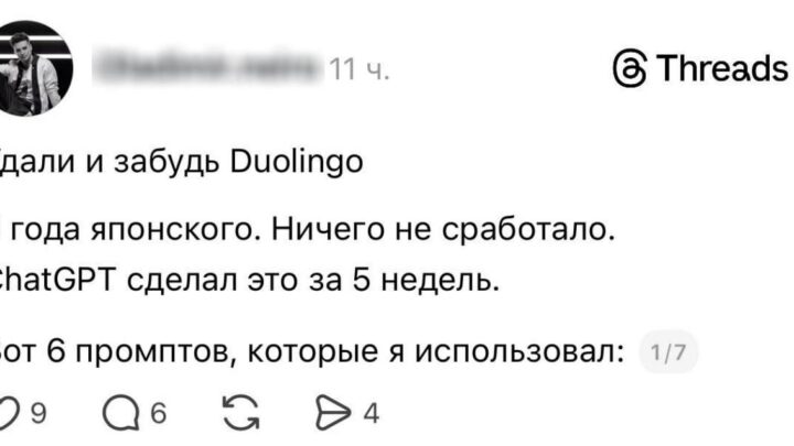 21.01.2026Чел из Treads учил Японский 3 года, но с помощью ChatGPT сделал это за 5 недель Он поделился шестью промптами, которые ему в этом помогли. Просто вставляете нужны язык и учите: Строим план обучения:Моя цель — применимый японский для [путешествия/работы/повседневной жизни]. Построй план на 30…