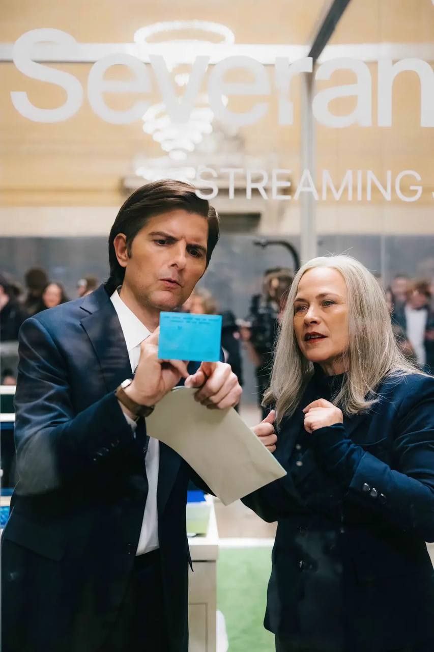 Внутри мини-коворкинг, где собрались главные актёры. Из-за прозрачных стен сотрудники смело опаздывают на работу, чтобы увидеть продолжение.