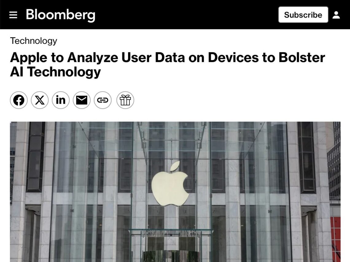 Apple хотят собирать личные данные пользователей для обучения ИИ. И это не просто слух, а инсайд Марка Гурмана.