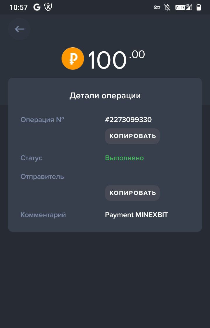 MINEXBIT: Инвестиционный проект с моментальными выплатами Получил моментальную выплату в размере +100…