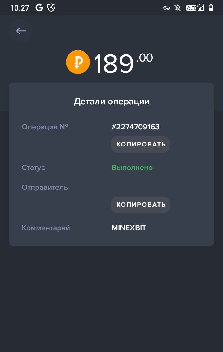 Обзор инвестиционного проекта MINEXBIT Получил моментальную выплату в размере +189 Rub. Присоединяюсь…