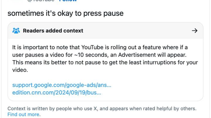 02.12.2025YouTube советует делать паузы с рекламой YouTube посоветовал всем делать паузы во время просмотра, чтобы отдохнуть от экрана — но есть нюанс: во время пауз YouTube теперь показывает рекламу. выключите видео, расслабьтесь… сейчас вам покажут рекламу 😃 GPT News | ChatGPT BOT