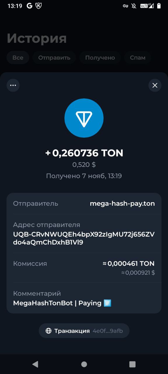 MEGA HASH: Быстрая выплата 0.26 TON и обзор проекта Получил выплату с…