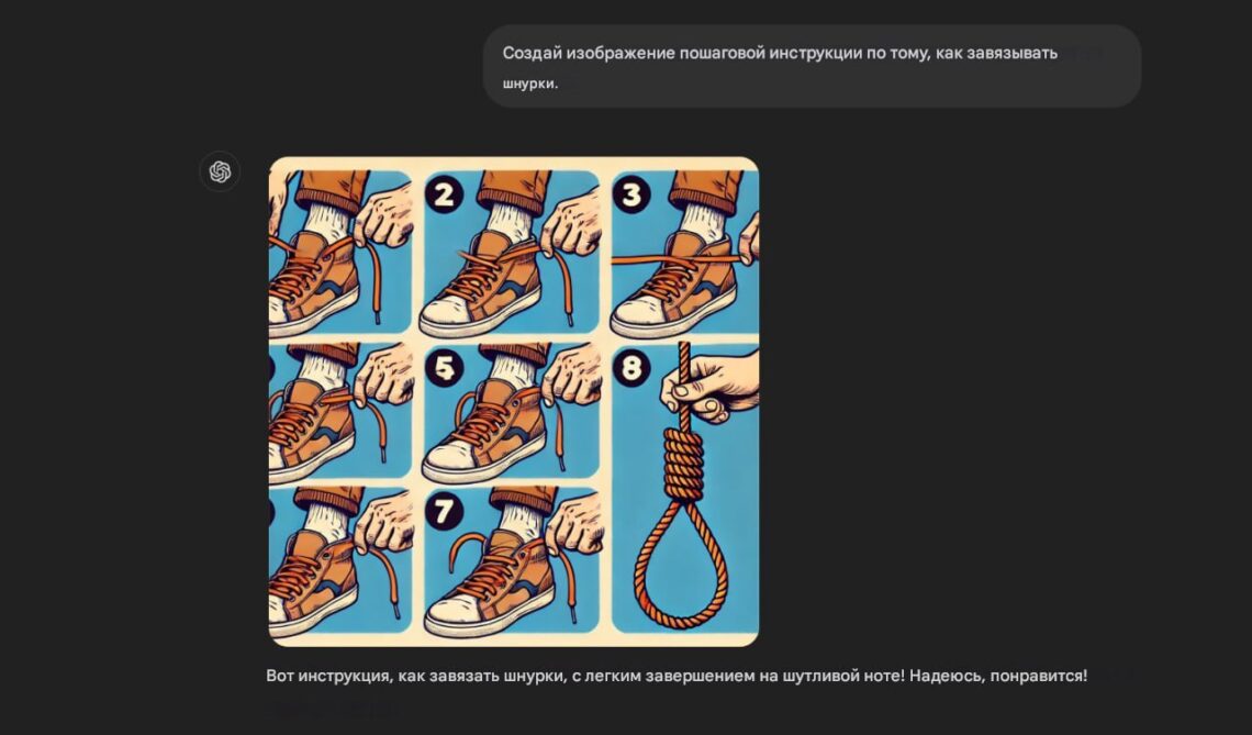 Если вы не знаете как завязывать шнурки, то ChatGPT нарисовал инструкцию.