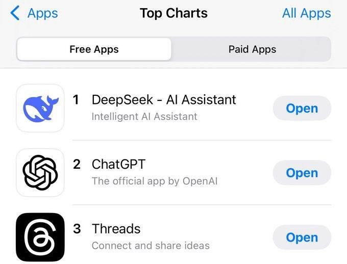 DeepSeek стал лидером по скачиваниям в США, обогнав даже GPT