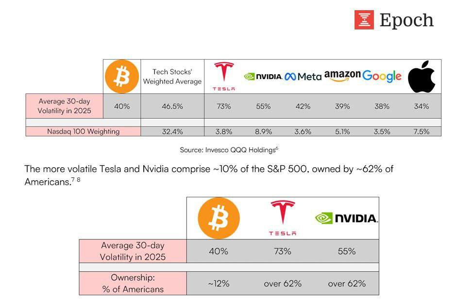 Выходит, что более волатильные активы сидят в портфелях большинства, которое считает их “нормой”, а менее волатильный Биткоин до сих пор клеймят как опасную экзотику.