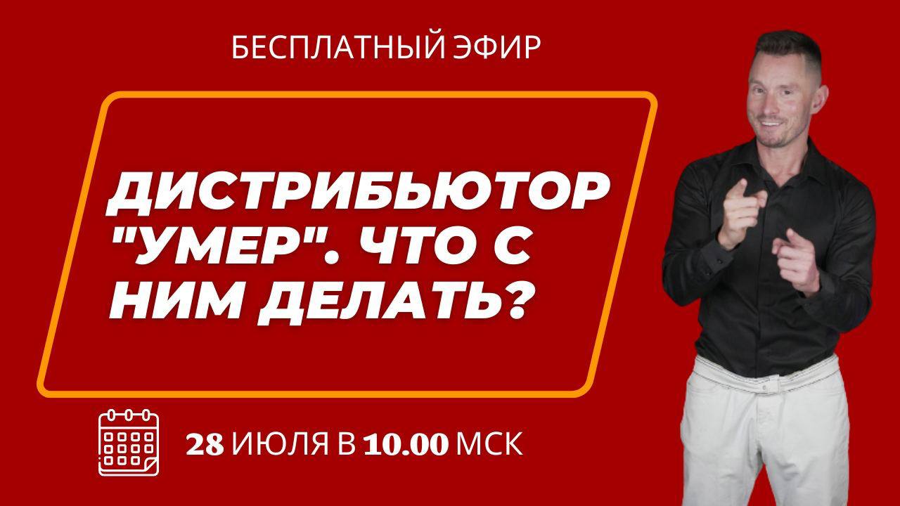 Уже сегодня в 10:00 Мск состоится бесплатный эфир на тему «Дистрибьютор «умер». Что с ним делать?». Мы хотим, чтобы каждый, кто приходит в нашу команду, добивался больших успехов, но понимаем, что это не всегда возможно, и не все этого даже хотят или нуждаются в этом.