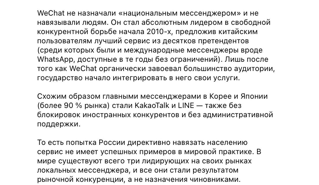 Дуров снова прокомментировал замедление Telegram — напомнил, что WeChat, LINE и KakaoTalk стали лидерами в своих странах не запретами, а продуктом.