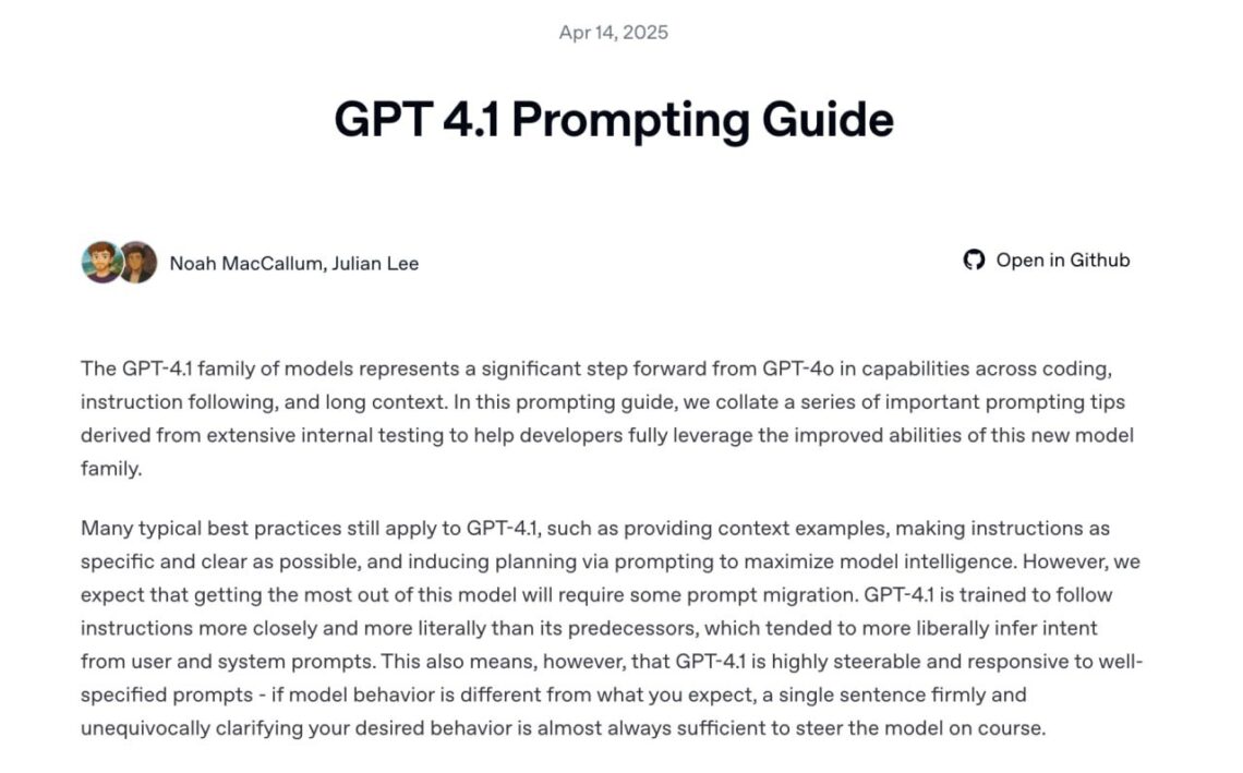 OpenAI выкатили топовый гайд по промтам для GPT-4.1 — всё, что нужно, чтобы выжимать из нейросети все соки.