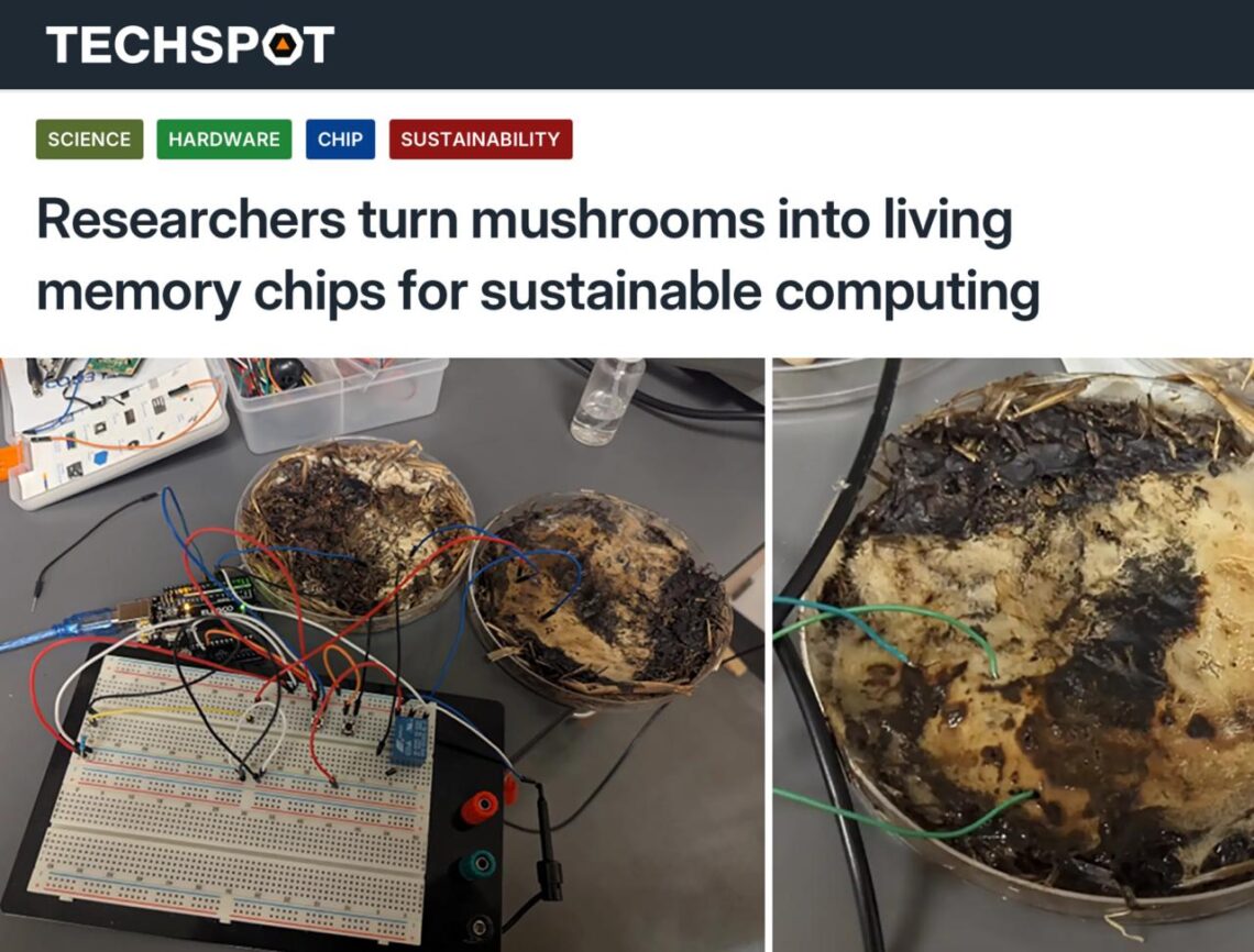 Микросхему из грибов собрали учёные — шампиньоны и шиитаке обрабатывали до 5850 сигналов в 1 секунду и запоминали их с точностью 90%.