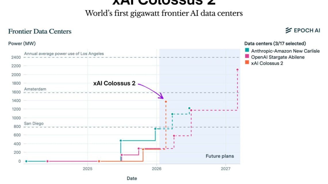 В эксплуатацию официально ввели суперкомпьютер Colossus 2 — ИИ-кластер с энергопотреблением на уровне 1 гигаватта. Это больше, чем пиковое энергопотребление города.