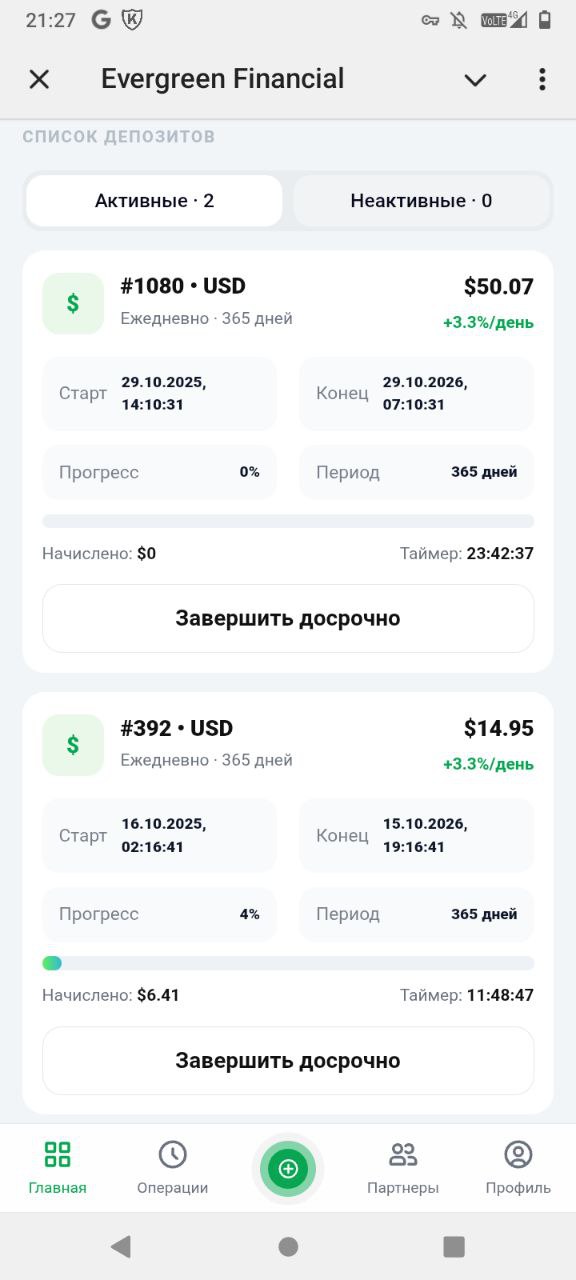 Доходность +1204% за год. Депозит приносит по 3.3% ежедневно на протяжении года. При этом тело депозита можно забрать в любое время с комиссией 20%. Вклады от 5$, вывод от 1$. Заявки на вывод обрабатываются в течение 3-х часов, но обычно в течении нескольких минут.