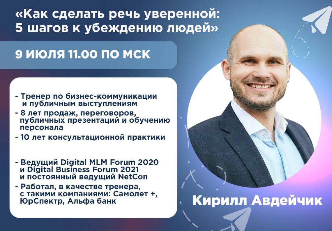 Вторник, 11:00 МСК. Встречаем гостя канала – Кирилла Авдейчика и обсудим «Как сделать речь уверенной». Эфир пройдет на канале.
