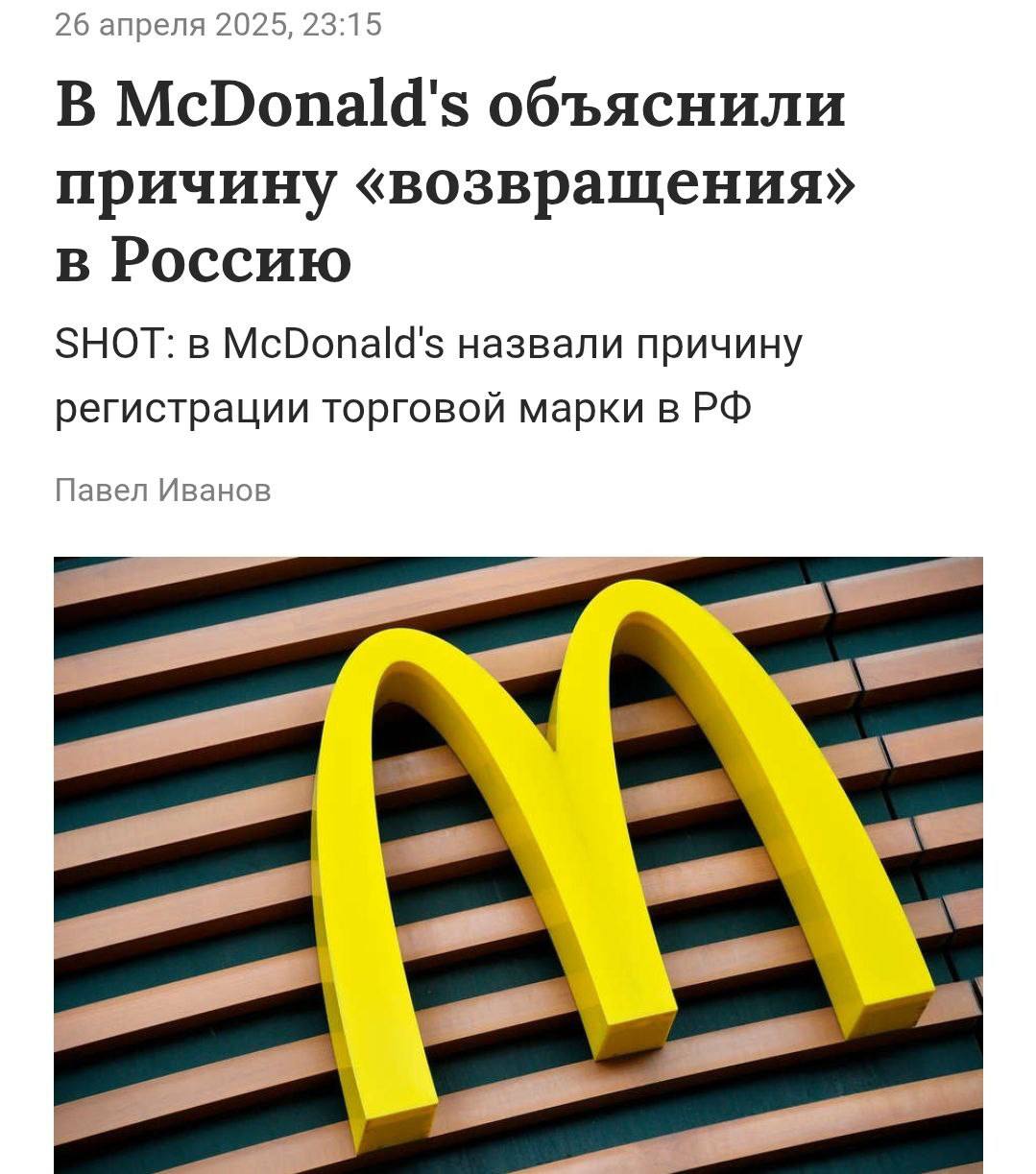 McDonald’s не вернётся в Россию и регистрирует торговую марку только для защиты бренда от использования посторонними. Компания обновляет права на товарные знаки по всему миру, даже где не работает.