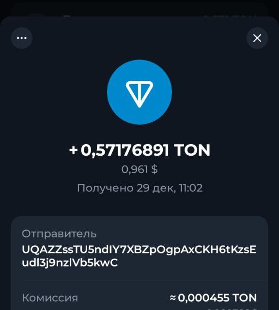 💸 Получил моментальную выплату в размере +0.57 TON, пришли практически моментально Бот здесь:
