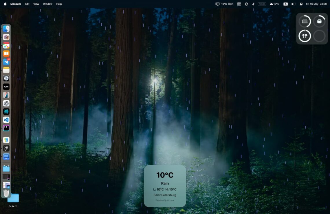 Дождь прямо на рабочем столе: нашли минималистичное приложение погоды, которое вместе с виджетом буквально выводит погодные условия на экран.
