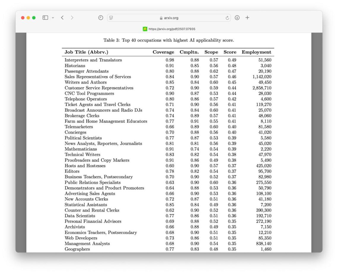 Как оказалось, проще всего нейронкам заменить профессии, для которых нужно высшее образование.