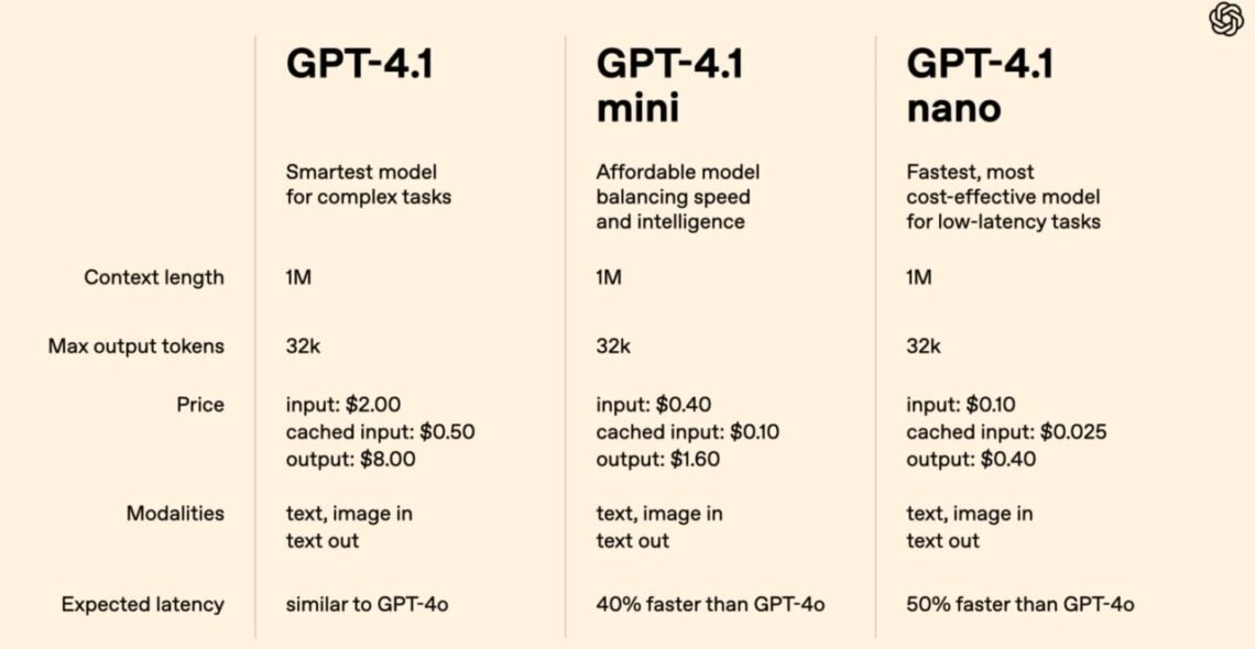 Новые модели OpenAI для разработчиков: 4.1, 4.1 mini, 4.1 nano