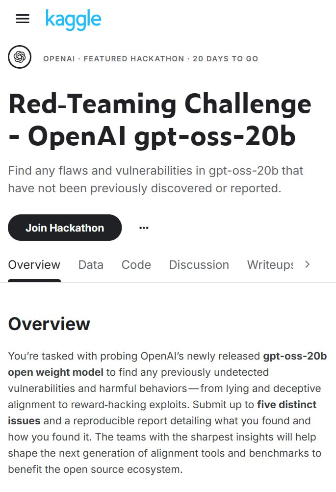 Если вы сможете взломать их вышедшую вчера опен-сорс модель gpt-oss-20b.