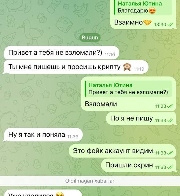 Друзья, если вам будут писать и просить крипту от моего имени — сразу кидайте в блок. Мошенники активизировались, и их тактика становится все более изощренной. Они могут использовать взломанные аккаунты в социальных сетях, мессенджерах или даже создавать поддельные профили, максимально похожие на мой. Цель одна – выманить у вас деньги, используя ваше доверие и мое имя.