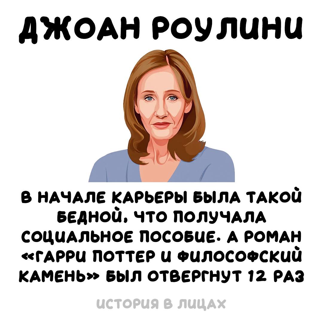 Или возьмем Джоан Роулинг, автора серии книг о Гарри Поттере. До того, как её рукопись была принята издательством, она получила дюжину отказов от различных издателей. Она была матерью-одиночкой, жила на пособие и боролась с депрессией. Но она не сдалась. Её вера в свою историю и персонажей оказалась сильнее всех препятствий. Отказ издателей, вместо того чтобы сломить её, лишь подстегнул её решимость. Сегодня «Гарри Поттер» – это одна из самых успешных книжных серий в истории, а Джоан Роулинг – одна из самых богатых женщин в мире.