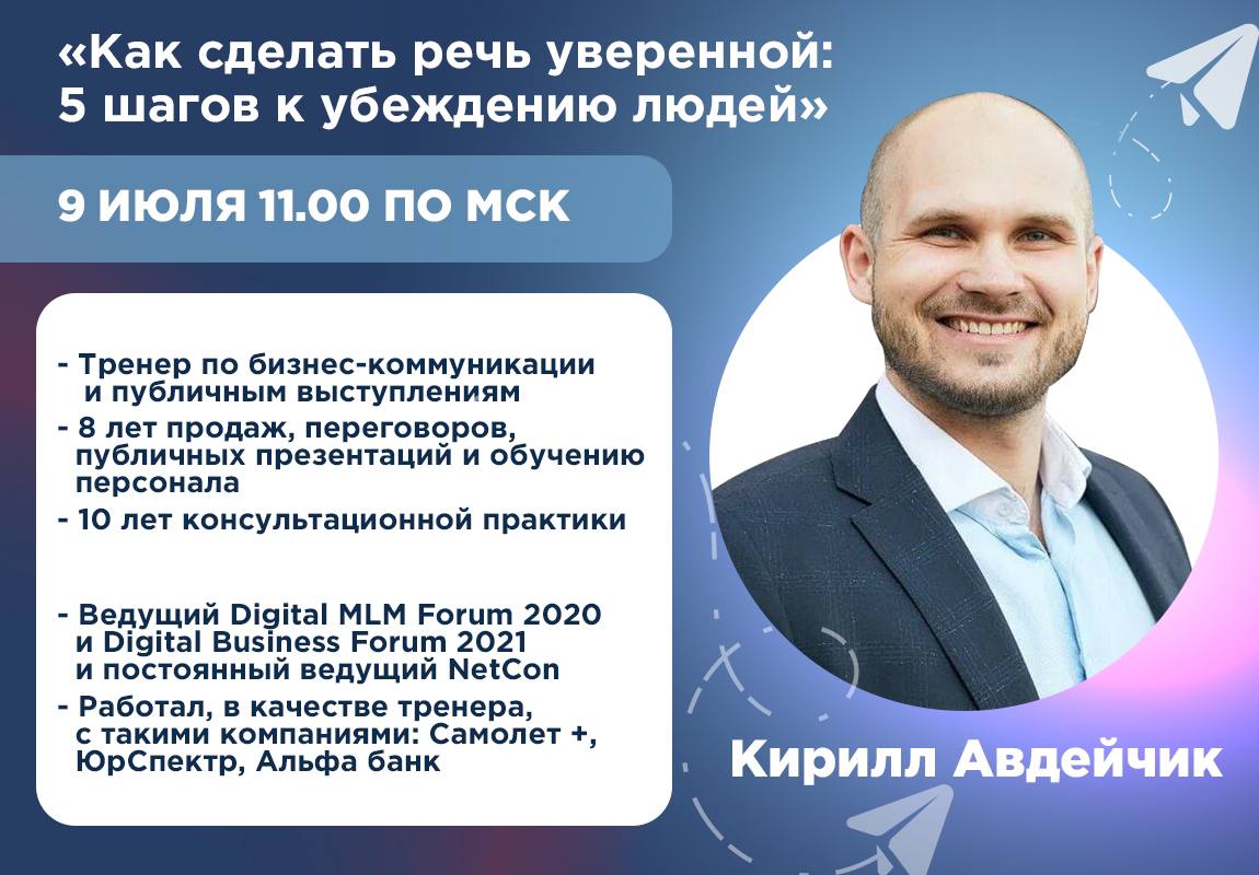Завтра: Прямой эфир «Как сделать речь уверенной» с Кириллом Авдейчиком Вторник, 11:00 МСК. Встречаем гостя канала – Кирилла Авдейчика и обсудим «Как сделать речь уверенной». Эфир пройдет на канале. Приглашаем всех, кто хочет научиться говорить четко, убедительно и без страха перед аудиторией, присоединиться к нашему…