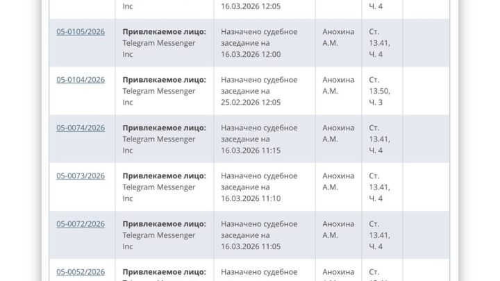 11.02.2026Telegram грозят штрафы на ₽64 млн — на мессенджер составили восемь административных протоколов. Материалы уже поступили в суд. Сервис обвиняют в недостаточных мерах по удалению и блокировке запрещенной информации. По каждому случаю предусмотрены штрафы до ₽8 млн. Первые два протокола рассмотрят в Таганском суде уже…
