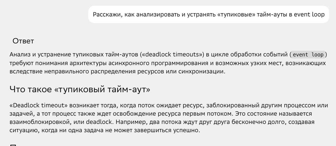 GigaChat: Диагностика и устранение «тупиковых» тайм-аутов в Event Loop