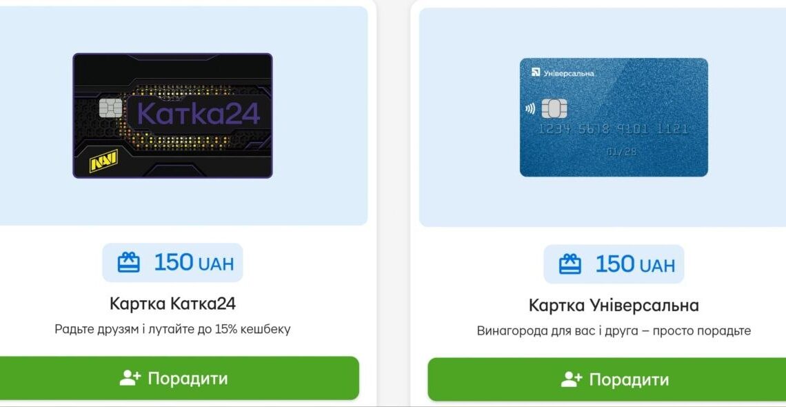 Приват24 сейчас даёт возможность получить по 150 грн за каждую карту. Открываешь две карты по ссылкам — и забираешь 300 грн суммарно. Что нужно сделать: