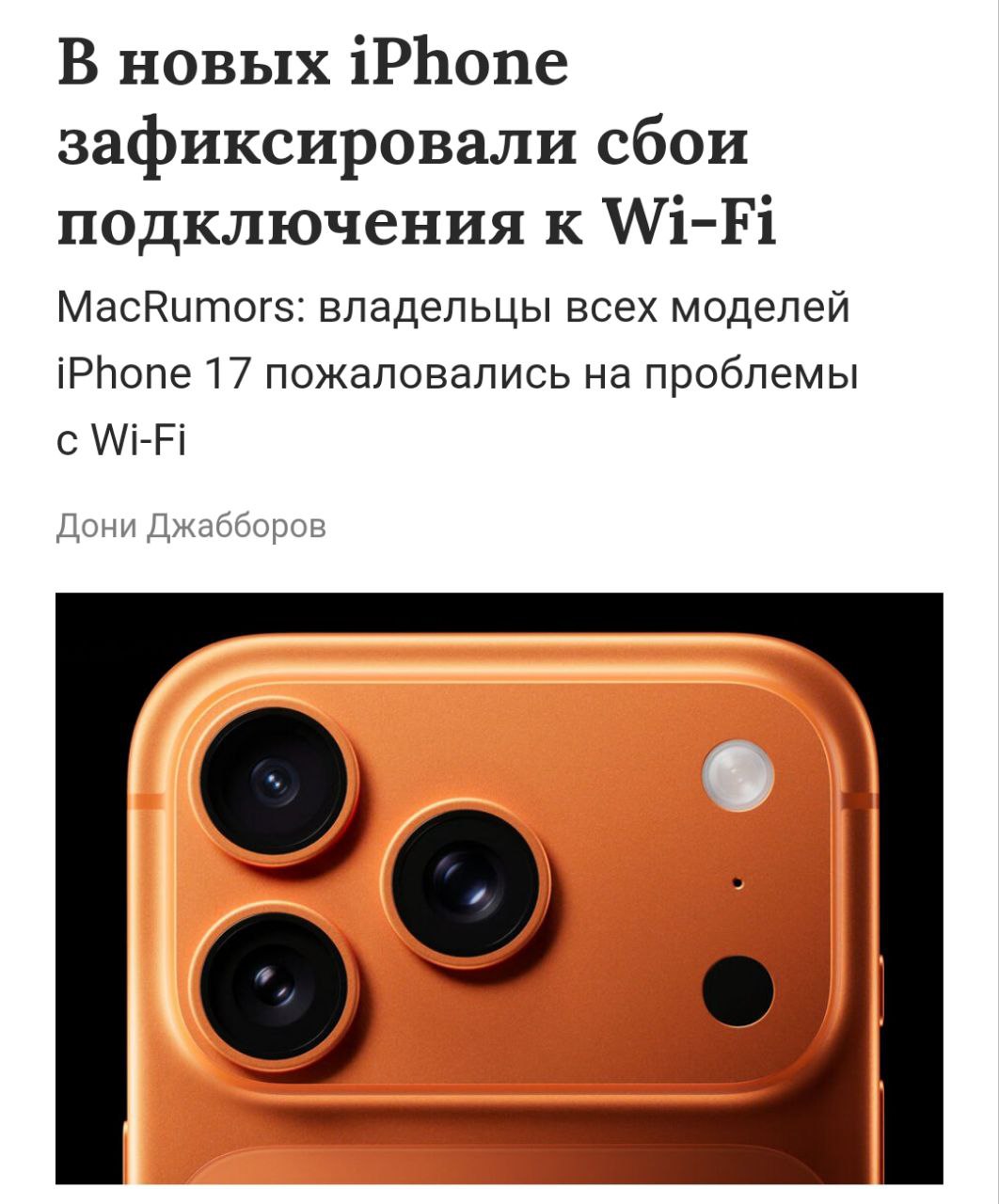Владельцы iPhone 17, iPhone Air, iPhone 17 Pro и iPhone 17 Pro Max фиксируют сбои в работе беспроводных сетей.