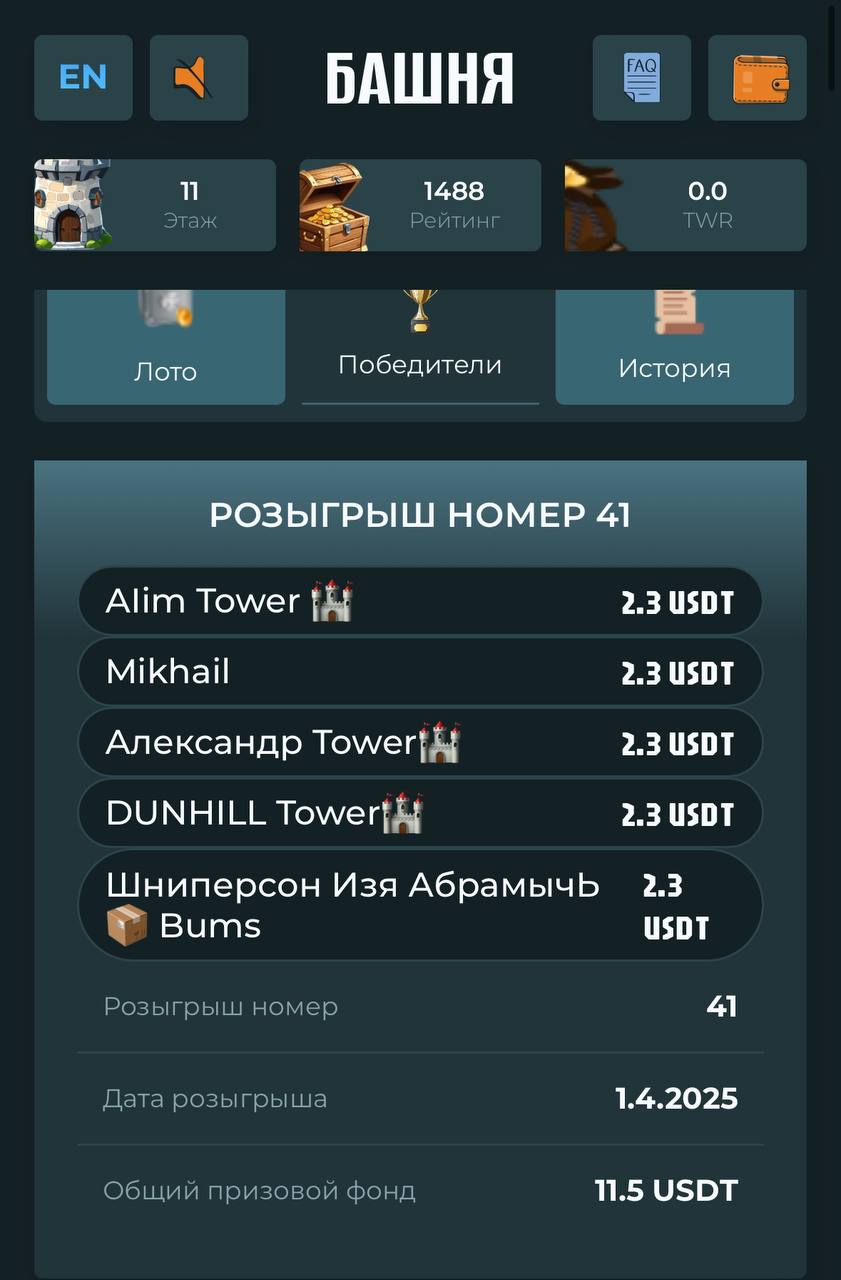 Розыгрыш 41 в TOWER: Бонусы и Призы