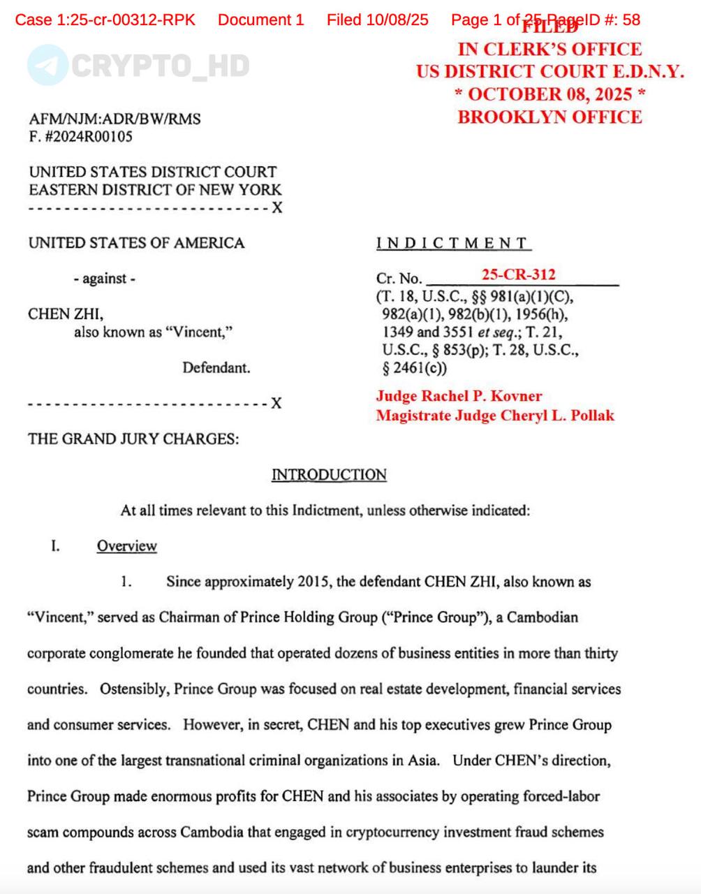 - По данным окружного суда Восточного округа Нью-Йорка, за схемой стоит гражданин Китая Чэнь Чжи (Chen Zhi). Его имя фигурирует в документах как ключевой организатор и бенефициар мошеннических операций.