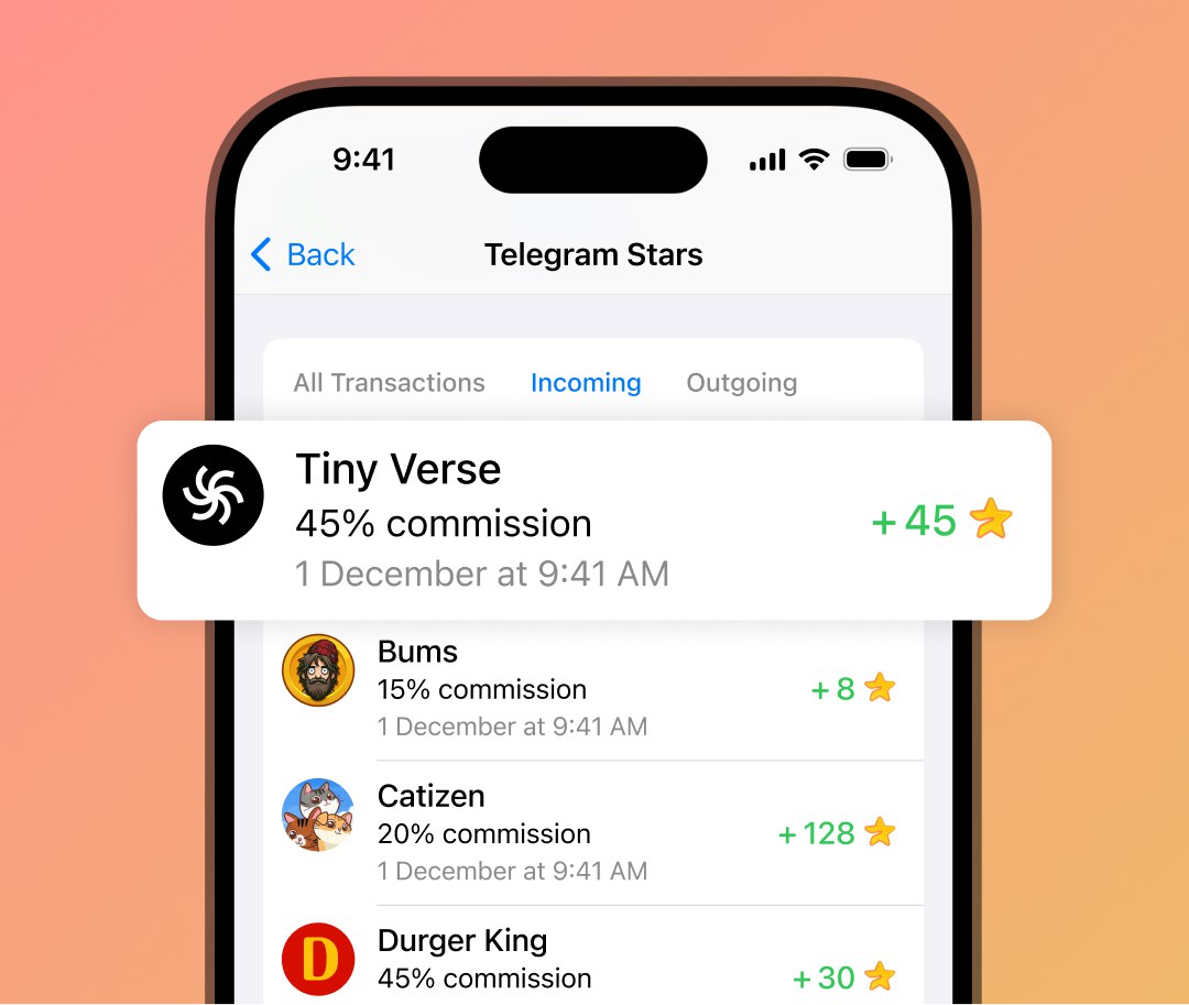 • Появилась партнерская программа. Теперь ЛЮБОЙ может зарабатывать в Telegram с реферальных ссылок. Делимся линкой на какое-нибудь приложение, юзер по ней переходит, делает покупку, а мы получаем с этого процент.