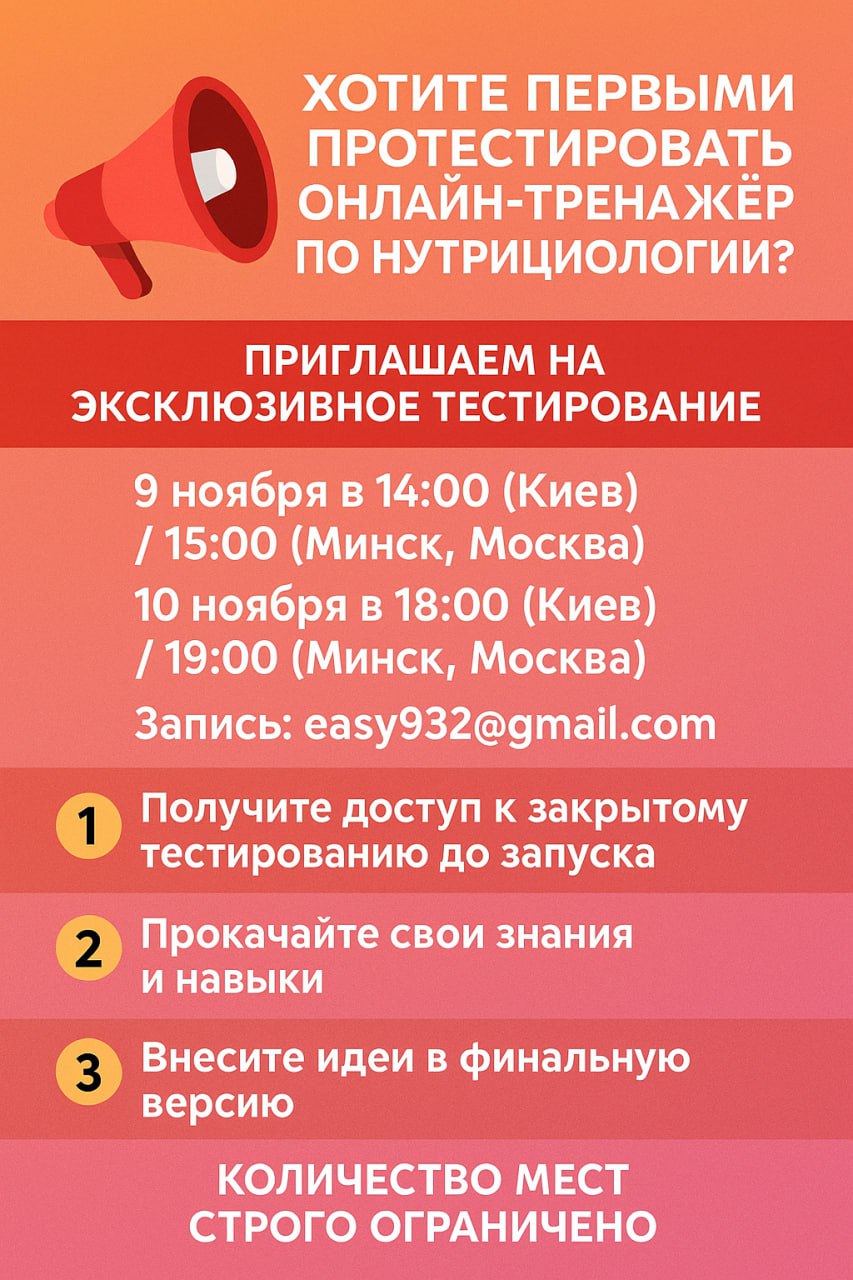 Хочешь быть в числе первых, кто протестирует уникальный онлайн-тренажёр по нутрициологии?