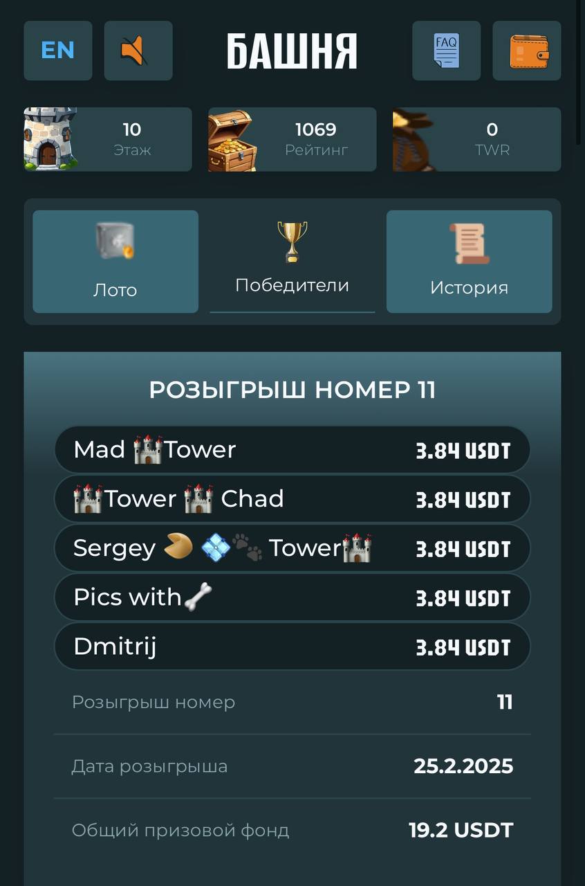 А с увеличением количества участников и пользователей и призов будет больше и больше. Представьте, какие возможности откроются, когда наше сообщество вырастет! Новые уровни розыгрышей, более ценные награды, а возможно, и совершенно уникальные события, доступные только самым активным и преданным игрокам. Мы постоянно работаем над расширением функционала и добавлением новых игровых механик, чтобы каждый день в 🏰 TOWER 🏰 приносил вам новые впечатления и возможности.