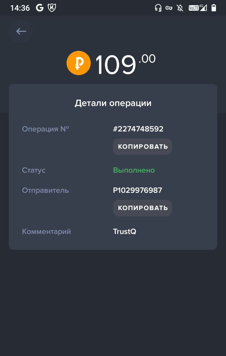 Получил моментальную выплату в размере +109 Rub. Присоединяюсь к новому Инвестиционному проекту под названием — TRUSTQ. Регистрация: TRUSTQ