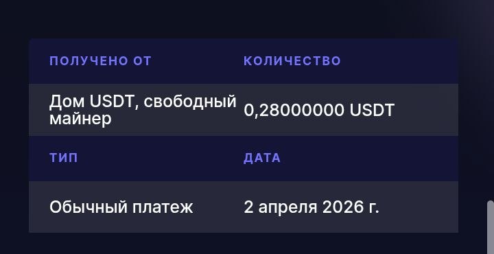 Получил очередную моментальную выплату +0.28 USDT Присоединяюсь к новому Инвестиционному проекту под названием — TheUsdtHouse Регистрация: На данный момент проект Платит! Постоянно следите за статусом проекта в нашем Telegram канале! Наш телеграмм канал: Видео Обзор проекта: пока нет __ Проект запустился: 30.03.2026 Нами Инвестировано: 3$ USDT — Нами выплачено: 0.28 USDT Тарифные планы: 200% за 20 дней, по 10% в сутки, начисления каждую секунду __ Мин депозит — 1 USDT Мин вывод — 0.01 USDT Партнёрская программа: 10% Рефбек Нет. Страховки нет За Рефбеком: Тип выплат: Инстант Платежные системы: Faucetpay __ Telegram чат проекта: Важно: никогда не забываем про риски, инвестируем свободные средства и разумные суммы