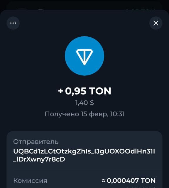 Заработок TON: Получена выплата +0.95 TON